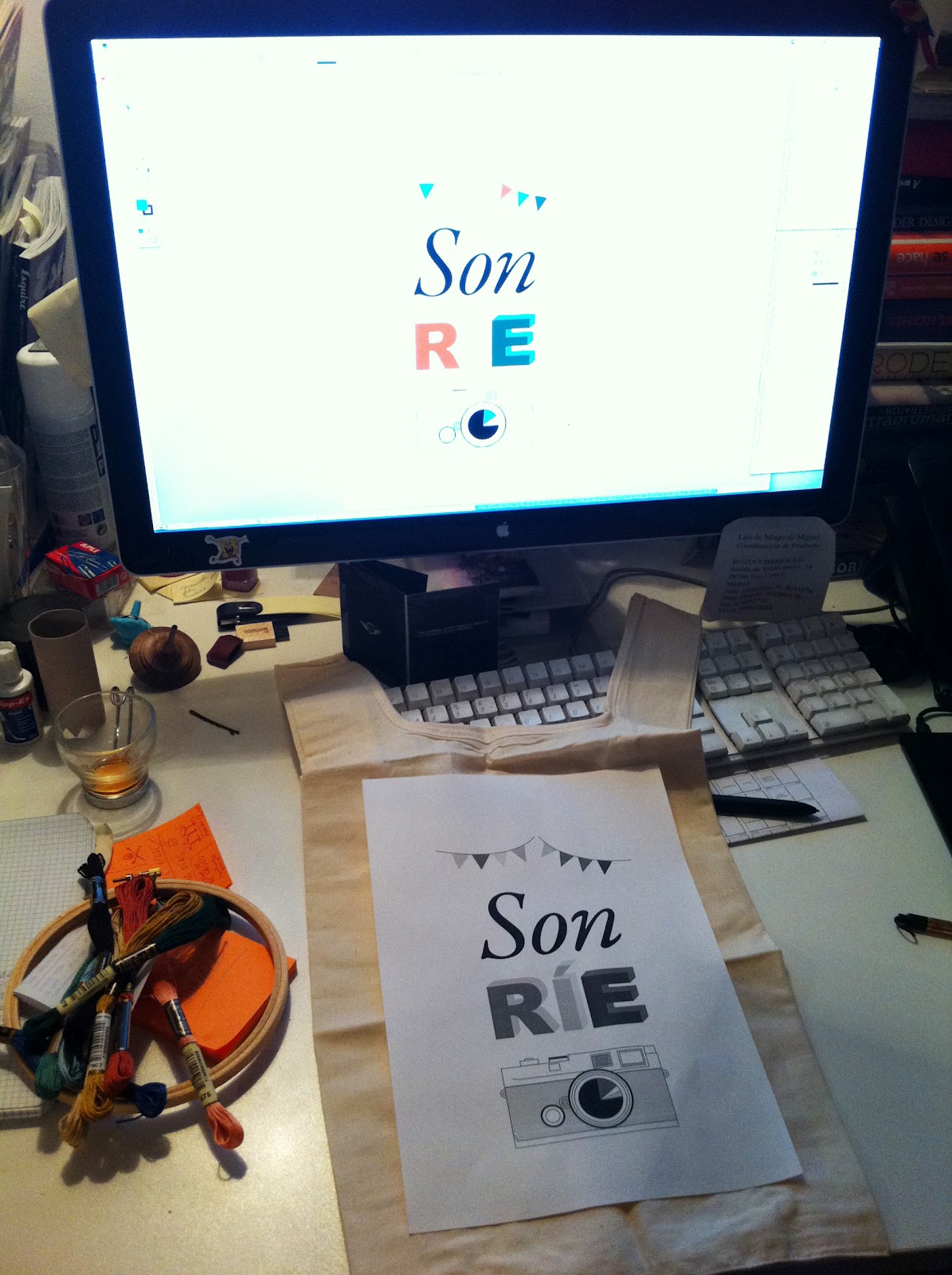 Yo quería hacer algo con tipografía, algo alegre y optimista, con toques de diseño pero también con guiños al craft y a lo lúdico. Y pensé en una fiesta, en banderines de colores, en niños correteando y en sonrisas frente a las cámaras de fotos. Así es como hice el primer boceto, a color, frente a una pantalla.