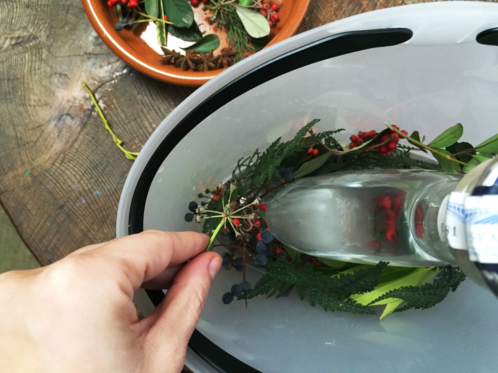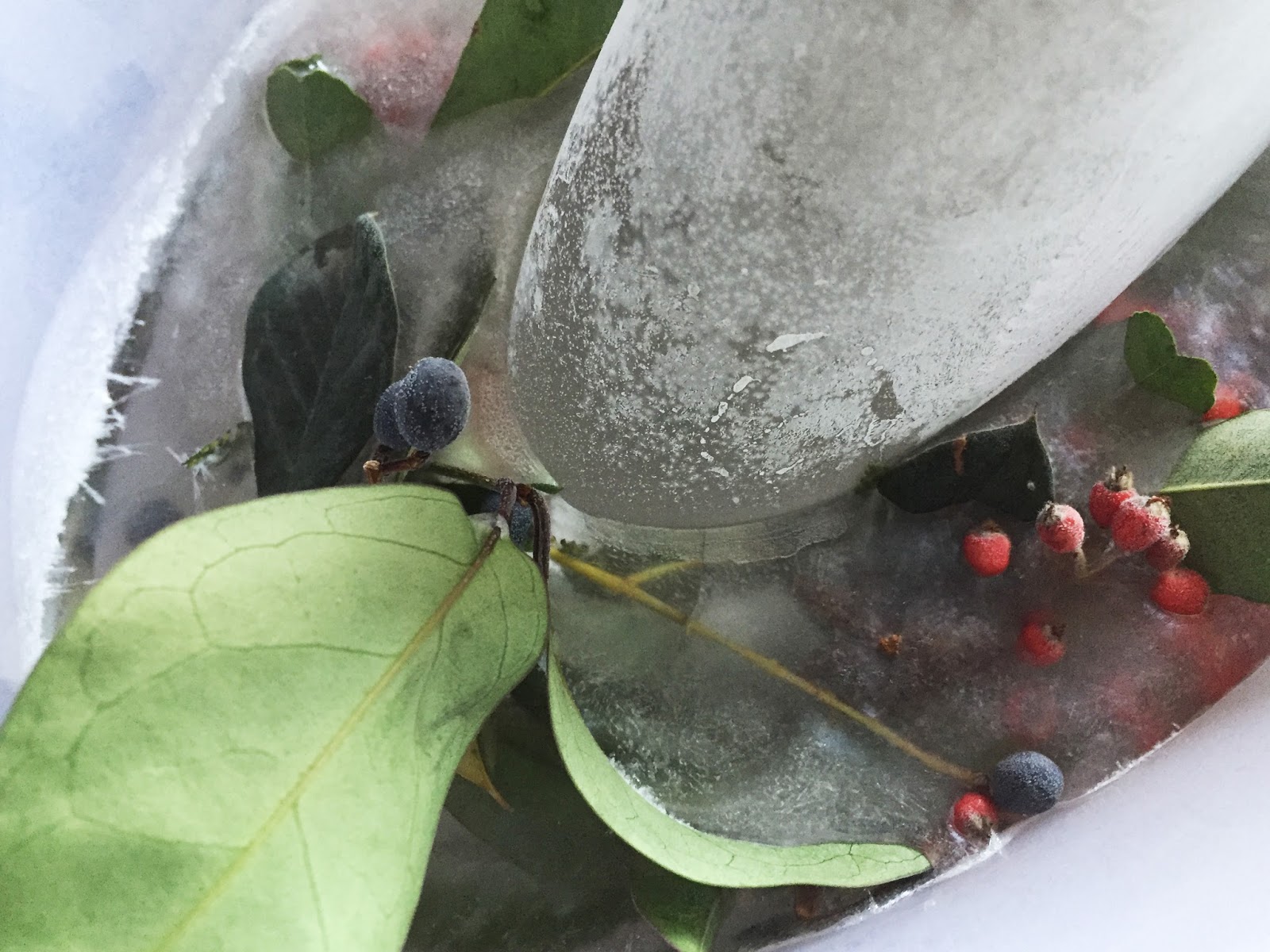 Para hacerlo necesitamos sobre todo ramitas, bayas o semillas variadas para darle color al enfriador. Nosotros vivimos cerca de un gran parque, con lo que en cualquier paseo siempre recogemos muchos tesoros. Y lo que no encontremos lo podemos comprar en la floristería. No os recomiendo usar flores grandes ni muy delicadas ya que se estropean en el congelado.