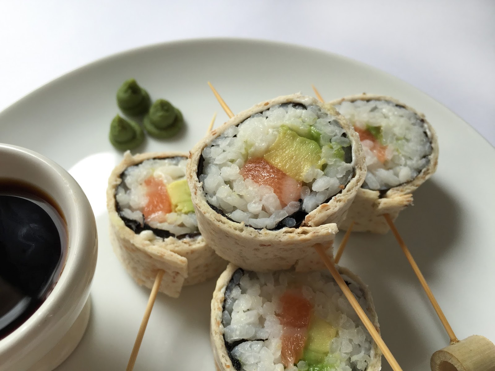 Si no te atreves a hacer sushi en casa, puedes comprarlo hecho y envolver cada maki con una tira del wrap y sujetarla con un palillo. Es perfecto para cuando tienes invitados y no necesitas saber usar los palillos para comer. Sírvelo con salsa de soja y un poco de wasabi, y no olvides avisar a tus amigos de que pica mucho esa mostaza verde.