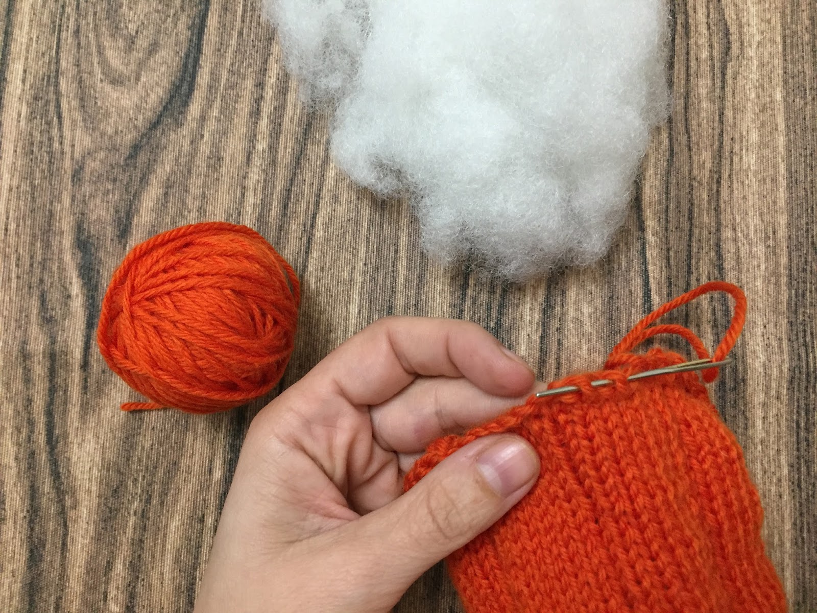 – Lana o algodón de color naranja, unos 20 gr, aproximadamente.