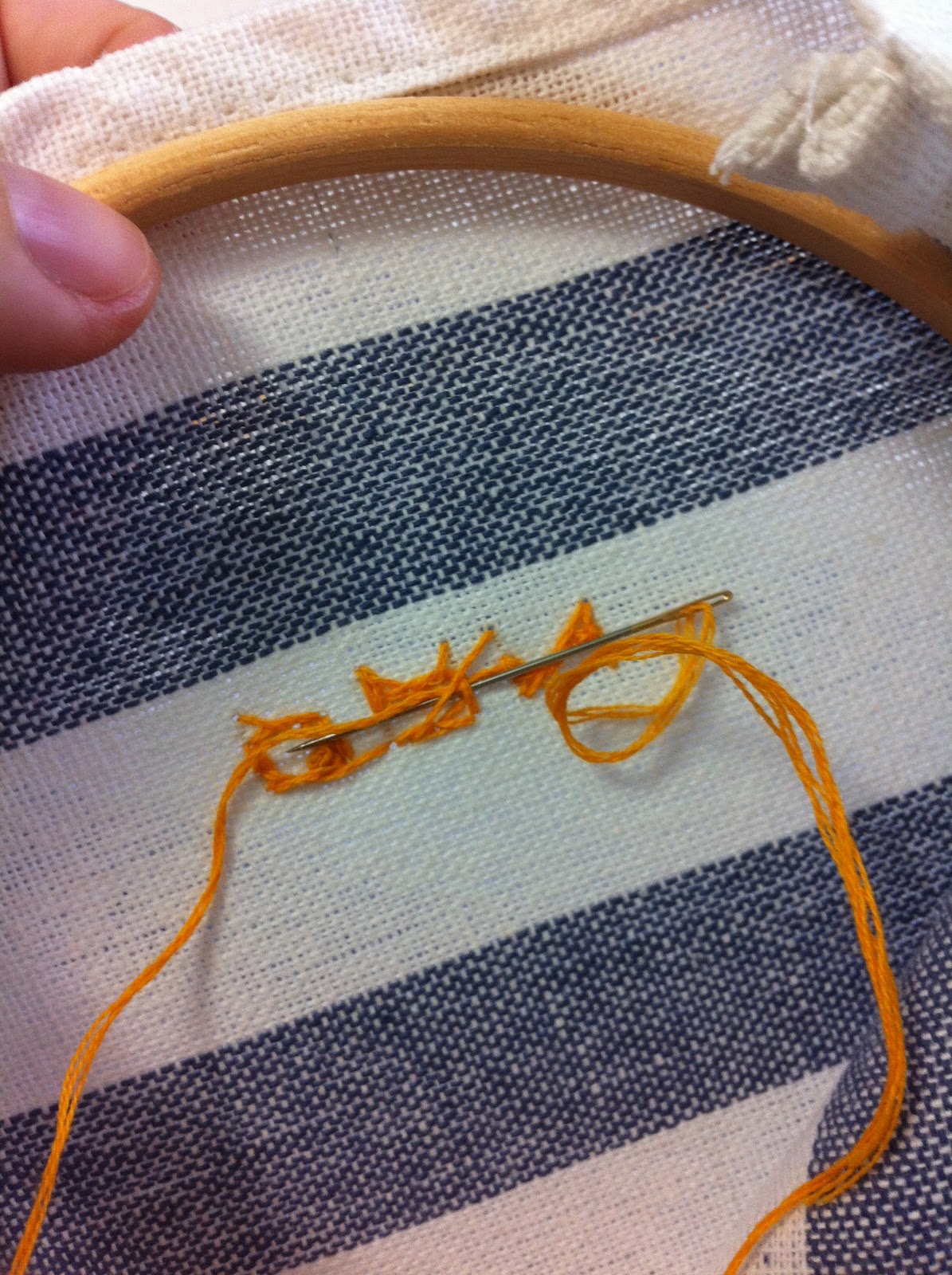 Para ponerle el nombre, usamos un lápiz para escribir muy suave en el borde de la bolsa. A continuación, con la ayuda de un bastidor de bordado tensamos la tela y empezamos a bordar.