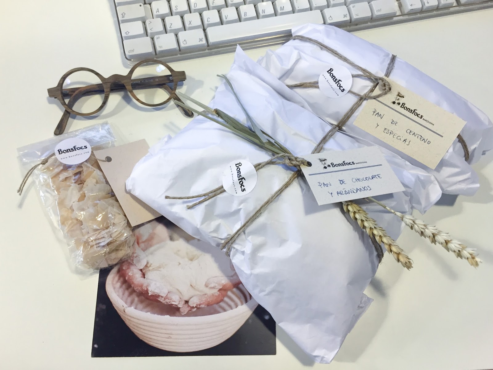 Hace unas semanas recibí uno de los regalos mas bonitos que he recibido en mucho tiempo. Una caja que olía pan recién hecho y que contenía pan recién hecho. Dos maravillosas hogazas envueltas con cariño, un paquetito sorpresa y una nota llena de cariño. Mónica, el alma de Bonsfocs, me enviaba un pedacito de su obrador, de su alma y de su respeto por las tradiciones.