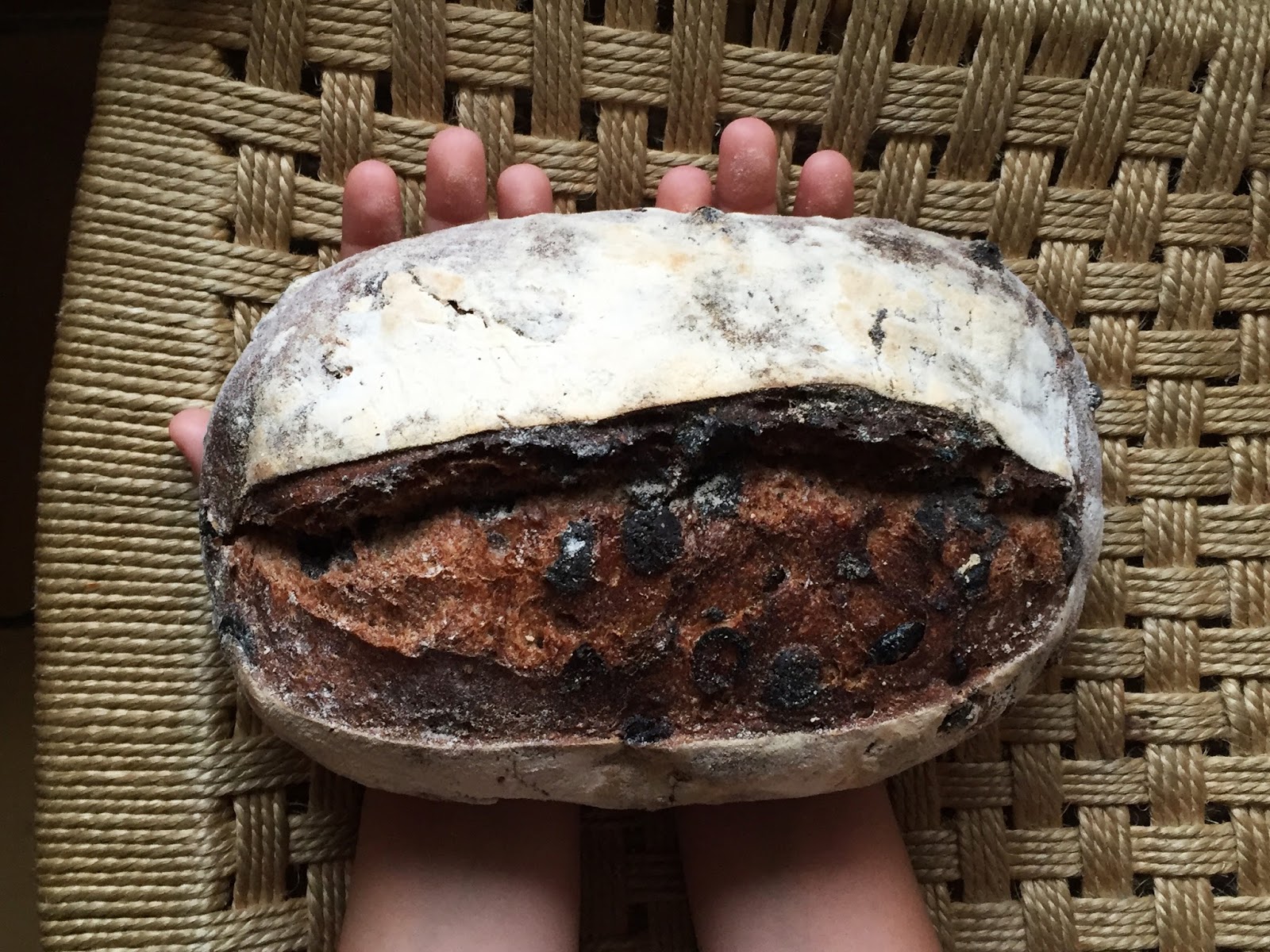 El pan de arándanos y chocolate negro era de llorar de rico. En menos de un día, en tostadas y con cacao, se cepillaron la hogaza entera mis hijos. el pequeño metía los deditos para comerse la miga y decía a cada tanto uhm!!! que ico
