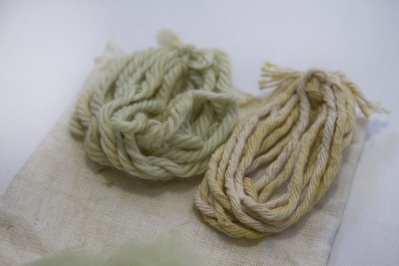 Las muestras, una vez secas se comportaron de maneras distintas. Mis favoritas han sido la lana australiana y el lino, que eran las dos fibras de mayor pureza y que sabía seguro que no habían tenido ningún tratamiento previo. Son las que mejor han absorbido el pigmento u las que mejor lo han conservado en los lavados, aunque la lana se me afieltró un poco con el verde.