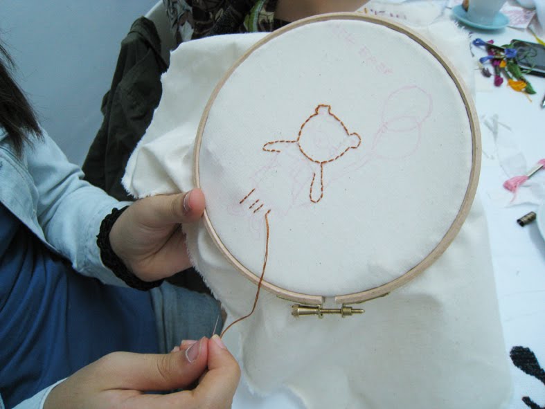 Esta es la crónica del taller que di el sábado en Teté Café Costura. Es una crónica breve, en fotos y pocas palabras. Llenazo en la sala (casi no cabíamos y me la pase de pie toda la mañana), muchas ganas de aprender, muchas ideas bonitas en los bocetos, directoras de arte de agencia de publicidad, de revistas y web, entregadas a la aguja. Por unas horas dejaron los ratones, los lápices y las pantoneras para empuñar agujas e hilos. Todo chicas, así que la próxima espero algún hombre en la sala, no seáis tímidos.