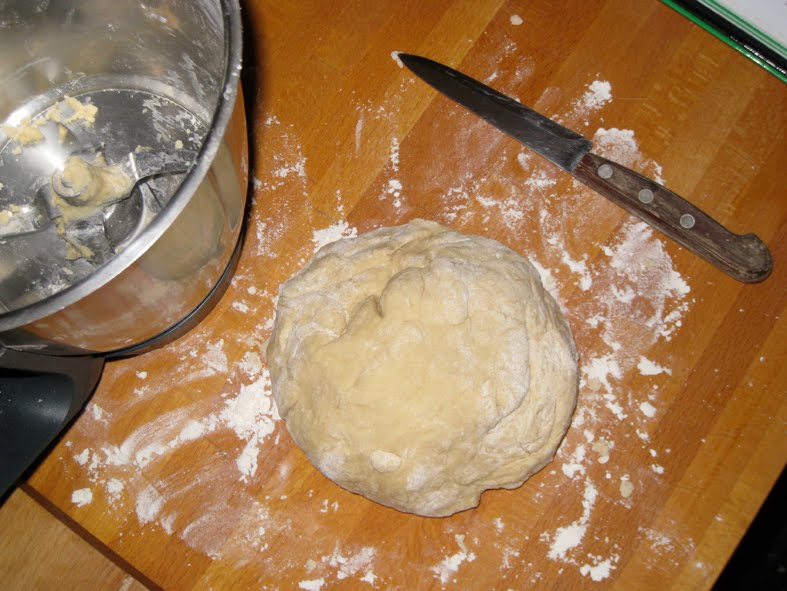 Se mezcla todo en la amasadora o se hace a mano colocando los ingredientes en un bol. Se aplastan los huevos con un tenedor hasta que se liguen con la harina. Se amasa poco hasta obtener una bola , no demasiado elástica ni homogenea, que si no luego se deshacen en el cocido. (como en la receta anterior, la verdad)