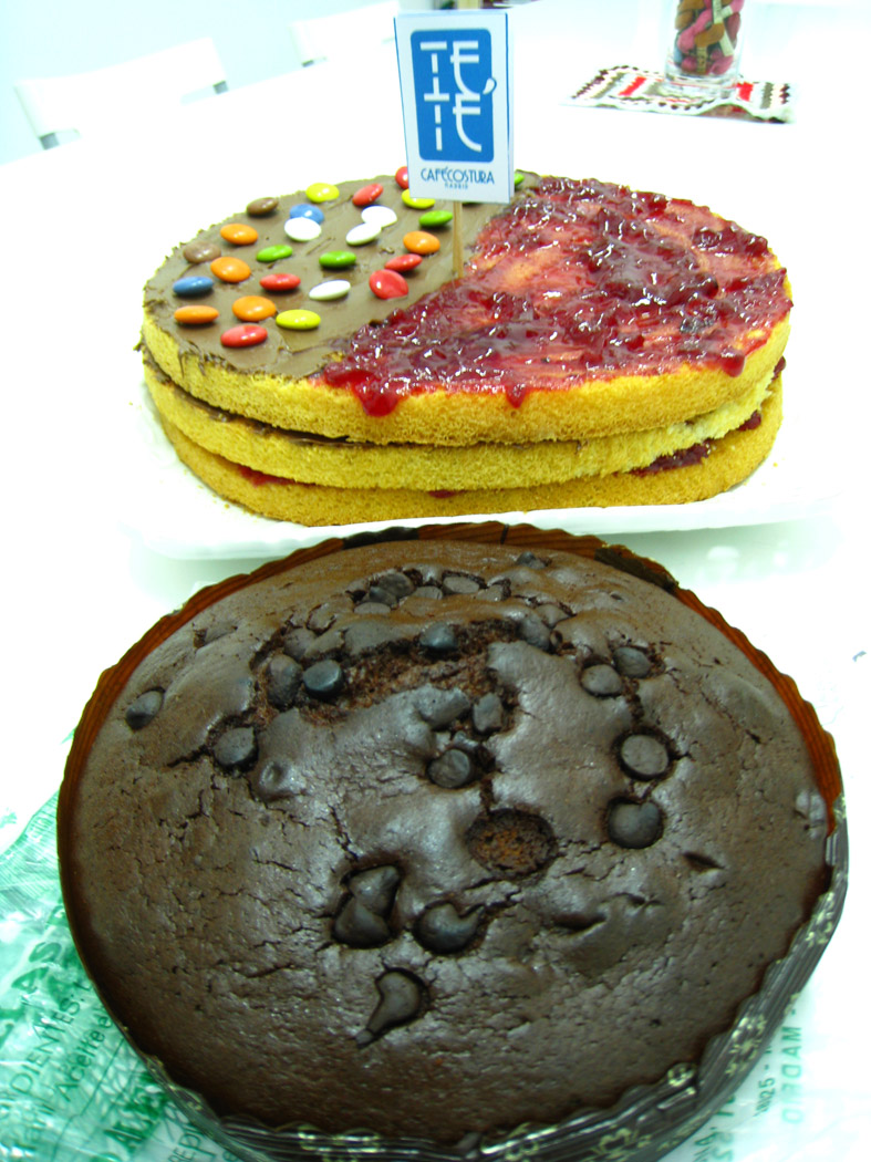 Y merendamos!! Para esta primera ocasión, Teresa nos hizo una tarta para merendar que estaba de muerte, y también tuvimos bizcocho de chocolate, té, café y zumos. Recibimos la visita de mi hija y del niño de Diana, con sus papis, la visita de amigos y curiosos que nos veían tejer por la ventana de la tienda y la visita inesperada y un tanto abrumadora del alcalde de Madrid…. pero eso es otra historia que es mejor que os cuente Teresa….