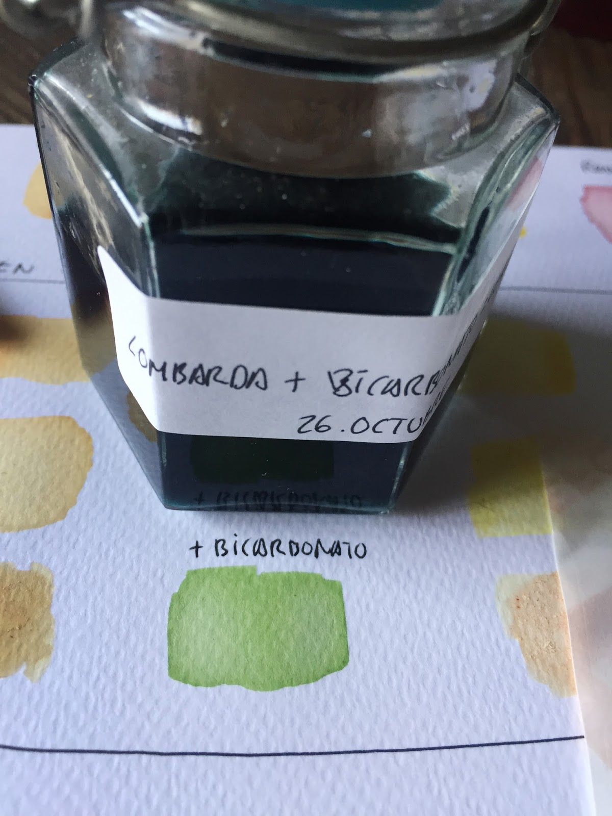 Esta es la tabla de muestras de los pigmentos del experimento anterior hecha durante el proceso. Me interesaba mucho documentar el proceso y ver como envejecían los pigmentos con el tiempo y el enfriado, Pero mi sorpresa fue que a diferencia de en el tejido, los colores en papel no cambiaban mucho y duraban bastante (el muestrario se quedo en la terraza una semana a la intemperie y apenas perdió su brillo ningún color). Ahora queda esperar para ver si nuestras acuarelas duran mucho al no tener estabilizantes ni conservantes del color como las acuarelas comerciales.
